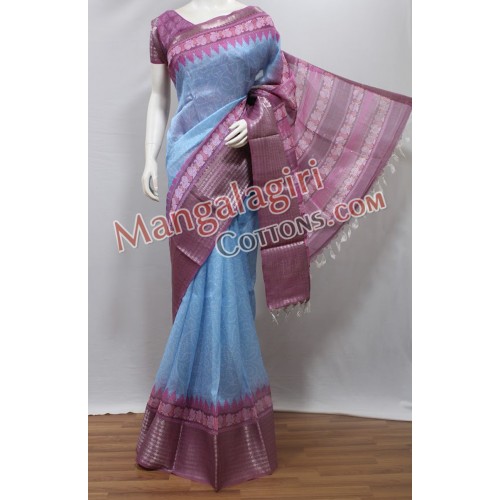 Digital Print Mangalagiri SemiPattu Saree (Cotton+SemiPattu Mix) with Zari Border. Saree comes with unstiched blouse piece. Weaving pattern:Semi thick weaving. Saree Length:6.2 to 6.4 meters(Which include blouse piece)