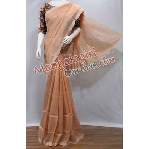 Mangalagiri SemiPattu Plain Saree (Cotton+SemiPattu Mix) with Plain Border. Saree comes with unstiched blouse piece. Weaving pattern: Semi thick weaving.