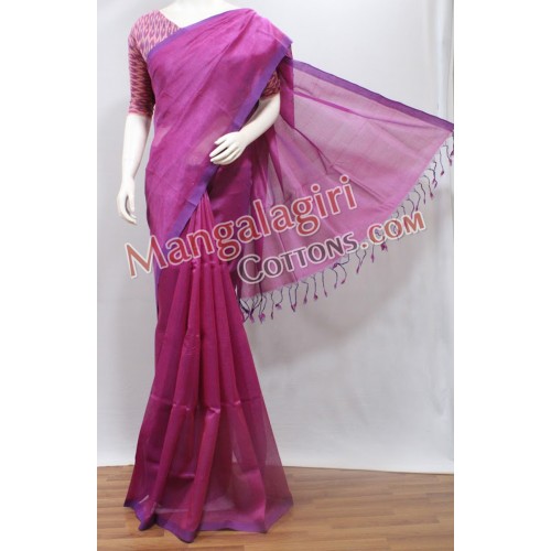 Mangalagiri Handloom Semi Pattu Plain Saree (Cotton Warp +Semi Pattu Weaving) with Running Blouse and Extra 1meter Ikkat Silk Blouse.