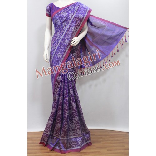 Printed Mangalagiri SemiPattu Saree (Cotton+SemiPattu Mix) with Plain Border. Saree comes with unstiched blouse piece.