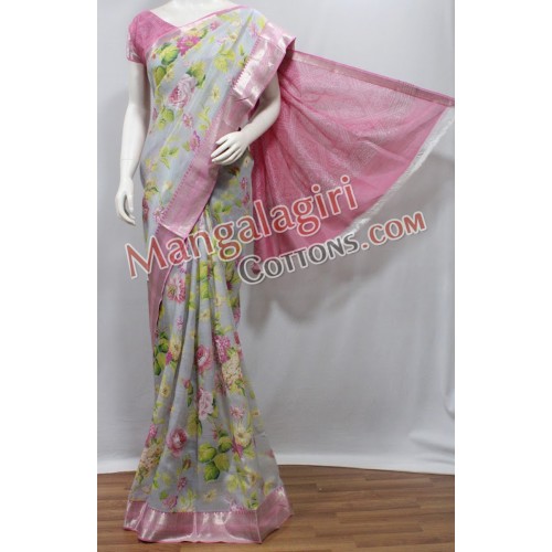 Digital Print Mangalagiri SemiPattu Saree (Cotton+SemiPattu Mix) with Zari Border. Saree comes with unstiched Blouse Piece.