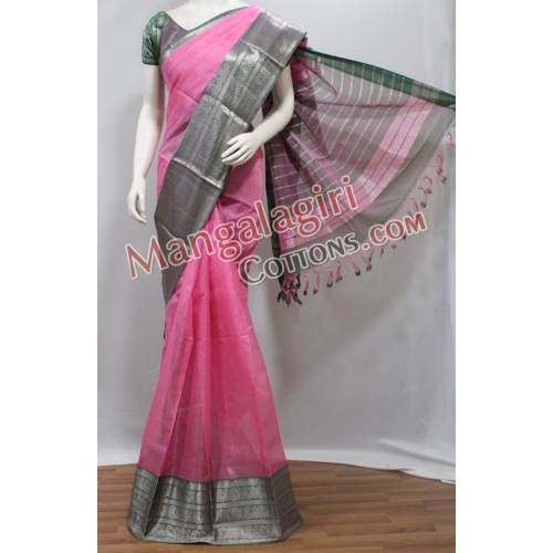 Mangalagiri Handloom Semi Pattu Saree (Cotton Warp + Semi Pattu Weaving) with Silver Zari Border. Saree comes with Unstitched Blouse Piece.