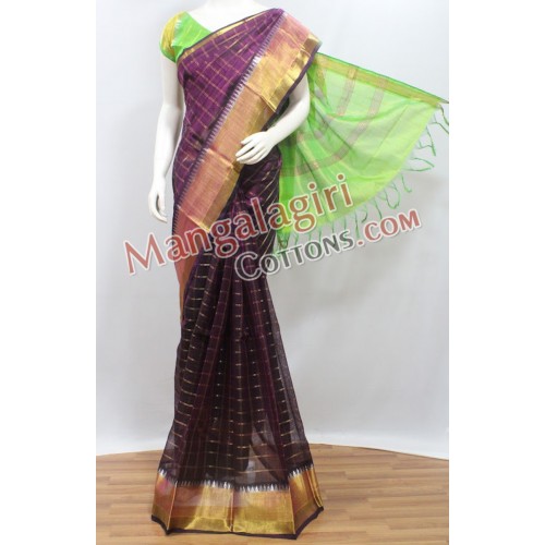 Mangalagiri Handloom Semi Pattu Saree (Cotton Warp + Semi Pattu Weaving) with Gold Zari Border. Saree comes with Unstitched Blouse Piece.