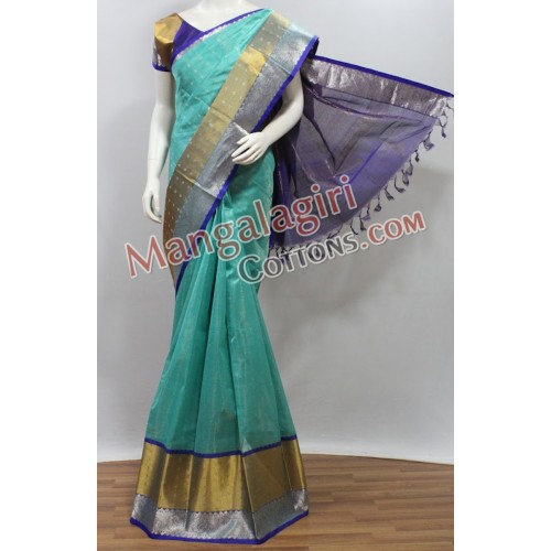 Mangalagiri Handloom Semi Pattu Saree (Cotton Warp +Semi Pattu Weaving) with Gold Zari Border. Saree comes with Unstitched Blouse Piece.
