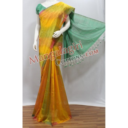 Mangalagiri Handloom Semi Pattu Saree (Cotton Warp + Semi Pattu Weaving) with Plain Border. Saree comes with Unstitched Blouse Piece.