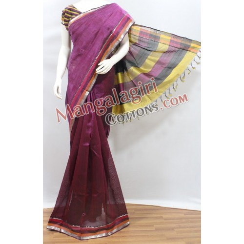 Mangalagiri Handloom Semi Pattu Saree (Cotton Warp + Semi Pattu Weaving) with Silver Zari Border. Saree comes with Unstitched Blouse Piece.
