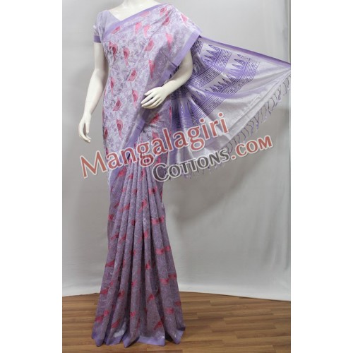Mangalagiri Handloom Semi Pattu Saree (Cotton Warp + Semi Pattu Weaving) with Plain Border. Saree comes with Allover Chikankari work and Plain Unstitched Blouse Piece.