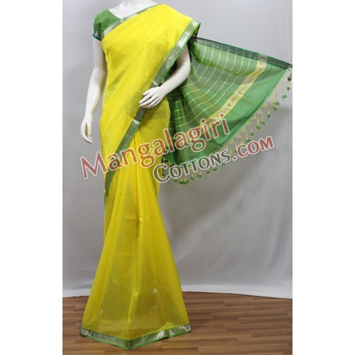 Mangalagiri Handloom Semi Pattu Saree (Cotton Warp + Semi Pattu Weaving) with Silver Zari Border. Saree comes with Unstitched Blouse Piece.