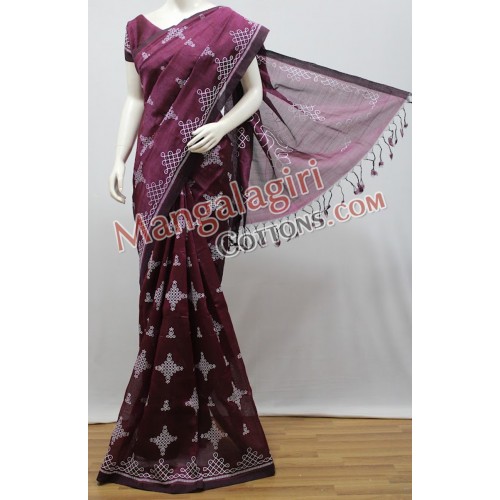 Mangalagiri Handloom Semi Pattu Printed Saree (Cotton Warp +Semi Pattu Weaving) with Plain Border.Saree comes with Unstitched Blouse Piece.