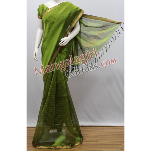Mangalagiri Handloom Semi Pattu Saree (Cotton Warp + Semi Pattu Weaving) with Gold Zari Border. Saree comes with Unstitched Blouse Piece.