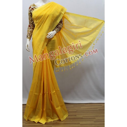 Mangalagiri Handloom Semi Pattu Plain Saree (Cotton Warp +Semi Pattu Weaving) with Running Blouse and Extra 1meter Kalamkari Silk Blouse.