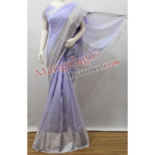Mangalagiri Handloom Pure Pattu Saree (Cotton Warp + Pure Pattu weaving) with Silver Zari Border. Saree comes with Unstitched Blouse Piece.