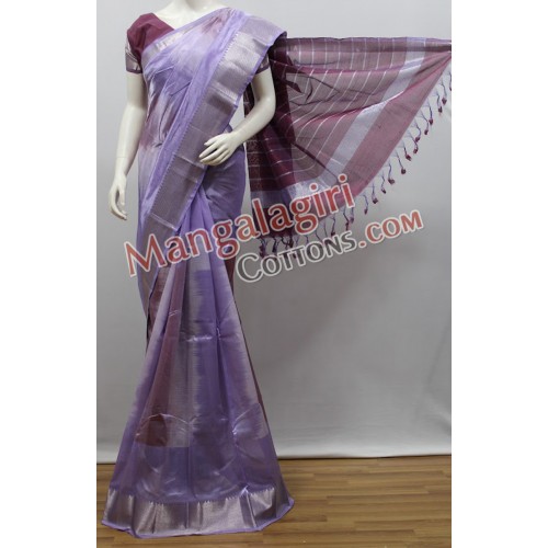Mangalagiri Handloom Semi Pattu Saree (Cotton Warp + Semi Pattu Weaving) with Silver Zari Border. Saree comes with Unstitched Blouse Piece.