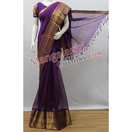 Mangalagiri Handloom Pure Pattu Saree (Cotton Warp + Pure Pattu weaving) with Gold Zari Border. Saree comes with Unstitched Blouse Piece.