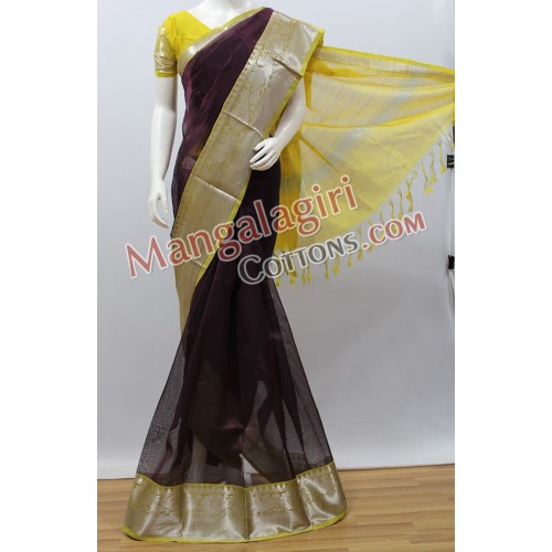 Mangalagiri Handloom Semi Pattu Saree (Cotton Warp + Semi Pattu Weaving) with Silver Zari Border. Saree comes with Unstitched Blouse Piece.