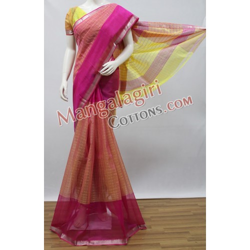 Mangalagiri Handloom Pure Pattu Saree (Cotton Warp + Pure Pattu weaving) with Silver Zari Border. Saree comes with Unstitched Blouse Piece.