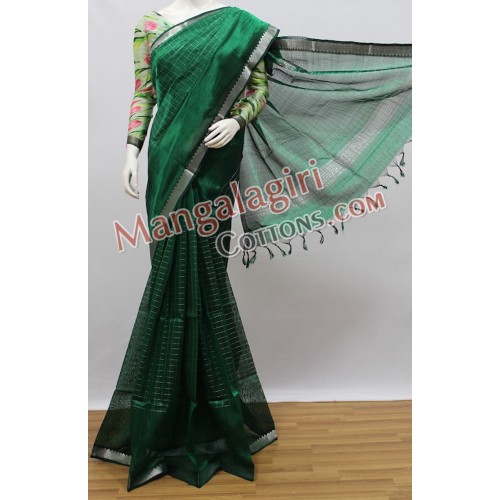 Mangalagiri Handloom Semi Pattu Silver Zari Boarder Saree (Cotton Warp + Semi Pattu Weaving) with Running Blouse and Extra 1meter Digital Print Silk Blouse.