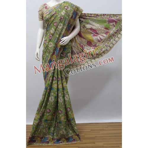 Kalamkari Silk Saree. Saree comes with Unstitched Blouse Piece.