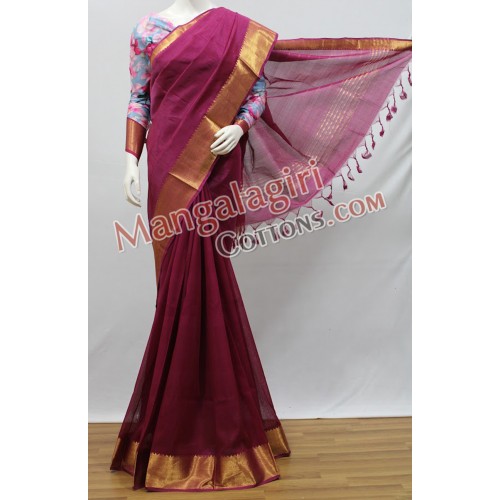 Mangalagiri Handloom Semi Pattu Gold Zari Boarder Saree (Cotton Warp +Semi Pattu Weaving) with Running Blouse and Extra 1meter Digital Print Silk Blouse.