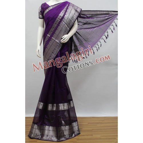 Mangalagiri Handloom Pure Pattu Saree (Cotton Warp + Pure Pattu weaving) with Gold Zari/Silver Zari Border. Saree comes with Unstitched Blouse Piece.