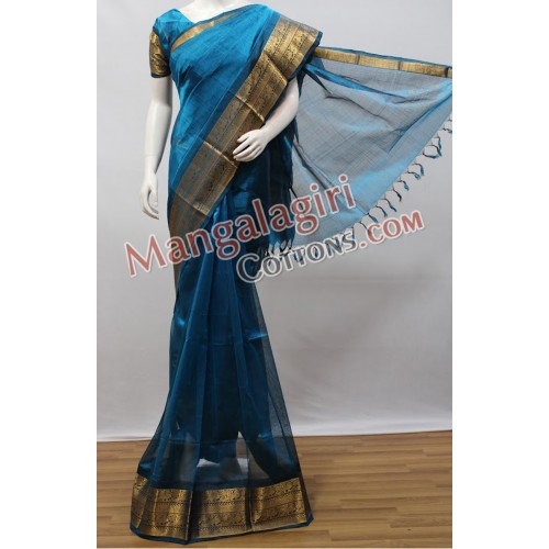 Mangalagiri Handloom Semi Pattu Saree (Cotton Warp + Semi Pattu Weaving) with Gold Zari Border. Saree comes with Unstitched Blouse Piece.