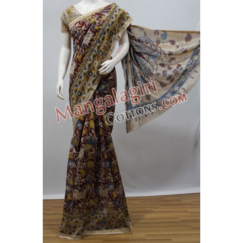 Chanderi Kalamkari Print Saree with Zari Boarder. Saree comes with Unstitched Blouse Piece.