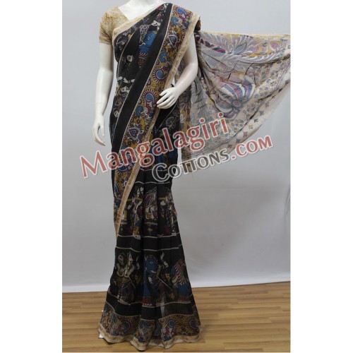 Chanderi Kalamkari Print Saree with Zari Boarder. Saree comes with Unstitched Blouse Piece.