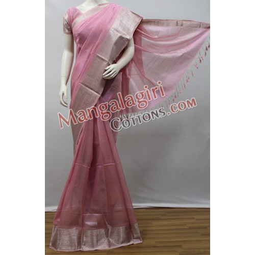Mangalagiri Handloom Semi Pattu Saree (Cotton Warp + Semi Pattu Weaving) with Silver Zari Border. Saree comes with Unstitched Blouse Piece.