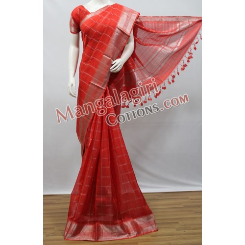 Mangalagiri Handloom Pure Pattu Saree (Cotton Warp + Pure Pattu weaving) with Silver Zari Border. Saree comes with Unstitched Blouse Piece.
