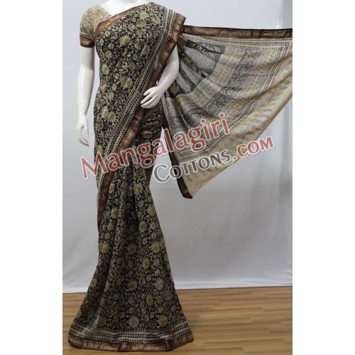 Kalamkari Maheswari Silk Saree with Gold Zari Border. Saree comes with Unstitched Blouse Piece.