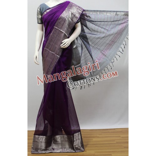 Mangalagiri Handloom Pure Pattu Saree (Cotton Warp + Pure Pattu weaving) with Silver Zari Border. Saree comes with Unstitched Blouse Piece.