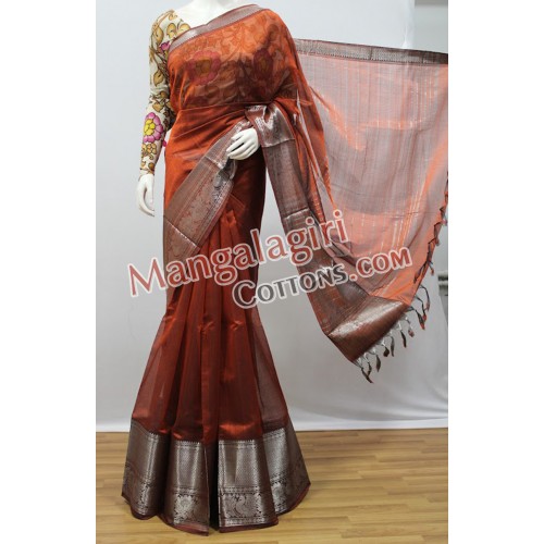 Mangalagiri Handloom Pure Pattu Saree (Cotton Warp + Pure Pattu weaving) with Kanchi Border. Saree comes with Running Blouse and Extra 1meter HandPrint Silk Blouse.