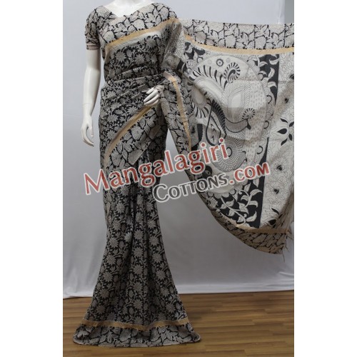 Kalamkari Silk Saree With Zari Border. Saree comes with Unstitched Blouse Piece.