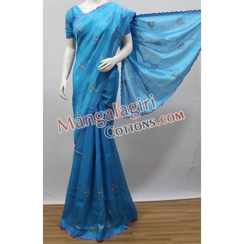 Mangalagiri Handloom Semi Pattu Cut Work Saree (Cotton Warp + Semi Pattu Weaving) With Thread Border. Saree comes with Allover Thread Machine Embroidery work and Unstitched Blouse Piece.