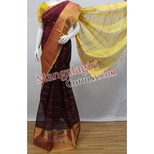 Mangalagiri Handloom Pure Pattu Butta Saree (Cotton Warp + Pure Pattu weaving) with Gold Zari Border. Saree comes with Unstitched Blouse Piece.