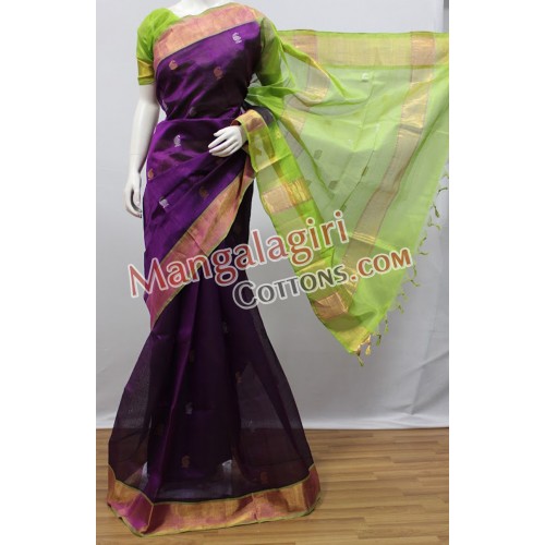 Mangalagiri Handloom Semi Pattu Saree (Cotton Warp + Semi Pattu Weaving) with Gold Zari Border. Saree comes with Unstitched Blouse Piece.