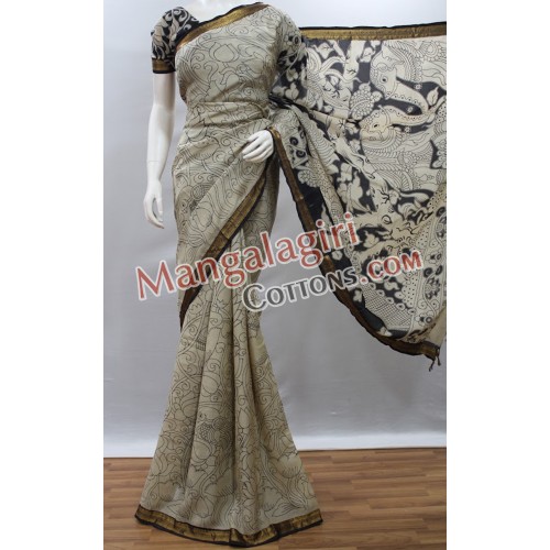Kalamkari Silk Saree with Nizam Border. Saree comes with Unstitched Blouse Piece.