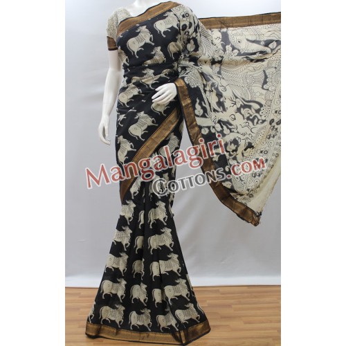 Kalamkari Silk Saree with Nizam Border. Saree comes with Unstitched Blouse Piece.