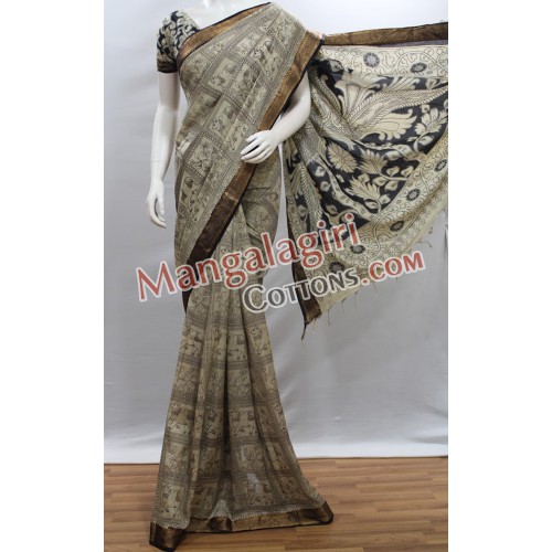 Kalamkari Silk Saree With Nizam Border. Saree comes with Unstitched Blouse Piece.