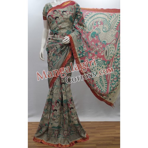 Kalamkari Silk Saree With Nizam Border. Saree comes with Unstitched Blouse Piece.
