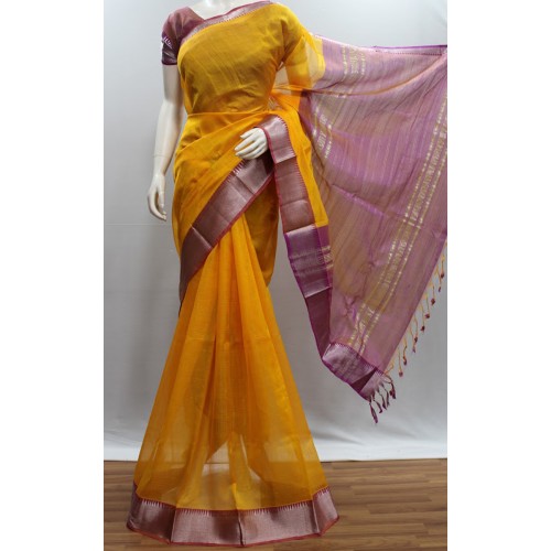 Mangalagiri Handloom Pure Pattu Saree (Cotton Warp + Pure Pattu weaving) with Silver Zari Border. Saree comes with Unstitched Blouse Piece.