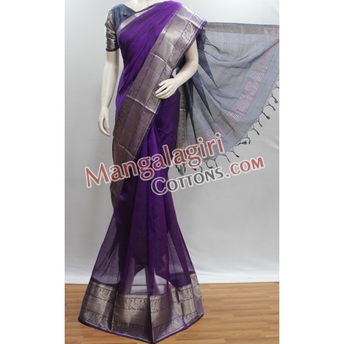 Mangalagiri Handloom Pure Pattu Kanchi Saree (Cotton Warp + Pure Pattu weaving) with Silver Zari Border. Saree comes with Unstitched Blouse Piece.