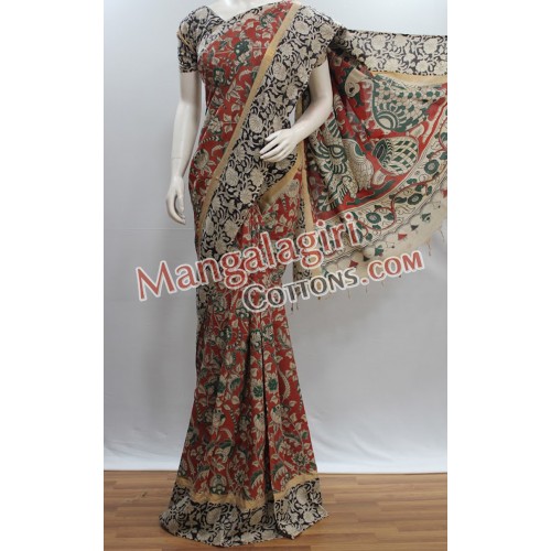 Kalamkari Silk Saree. Saree comes with Unstitched Blouse Piece.
