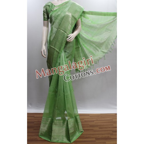 Mangalagiri Handloom Pure Pattu Saree (Cotton Warp + Pure Pattu weaving) with Silver Zari Border. Saree comes with Unstitched Blouse Piece.