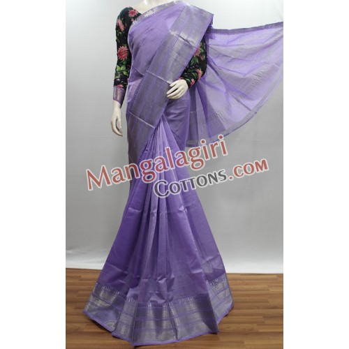 Mangalagiri Handloom Semi Pattu Plain Saree (Cotton Warp +Semi Pattu Weaving) with Running Blouse and Extra 1meter Digital Print Silk Blouse.