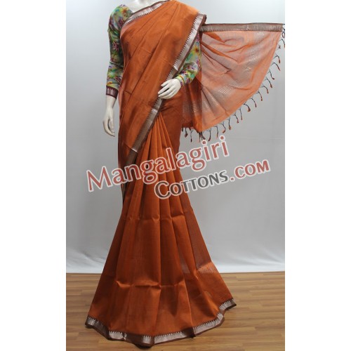 Mangalagiri Handloom Semi Pattu Plain Saree (Cotton Warp +Semi Pattu Weaving) with Running Blouse and Extra 1meter Digital Print Silk Blouse.