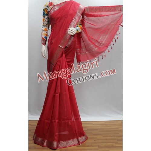 Mangalagiri Handloom Semi Pattu Plain Saree (Cotton Warp +Semi Pattu Weaving) with Running Blouse and Extra 1meter Digital Print Silk Blouse.