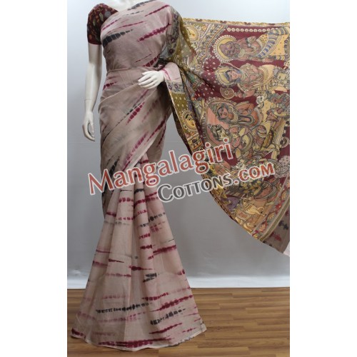 Mangalagiri Powerloom Semi Pattu Malabary Digital Print Saree (Cotton Warp +Semi Pattu Weaving) with Plain Border. Saree comes with Unstitched Blouse Piece.