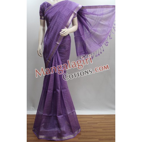 Mangalagiri Handloom Semi Pattu Anchumalupu Saree (Cotton Warp + Semi Pattu Weaving) with Silver Zari Border. Saree comes with Unstitched Blouse Piece.