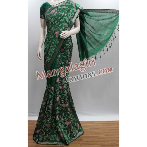 Mangalagiri Handloom Semi Pattu Plain Saree (Cotton Warp + Semi Pattu Weaving) with Silver Zari Border Border. Saree comes with Allover Thread Machine Embroidery work and Plain Unstitched Blouse Piece.
